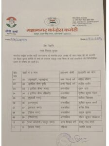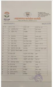 कांग्रेस ने जारी की पार्षद प्रत्याशियों की लिस्ट, दो वार्डो के प्रत्याशियों पर किया जा रहा है विचार
