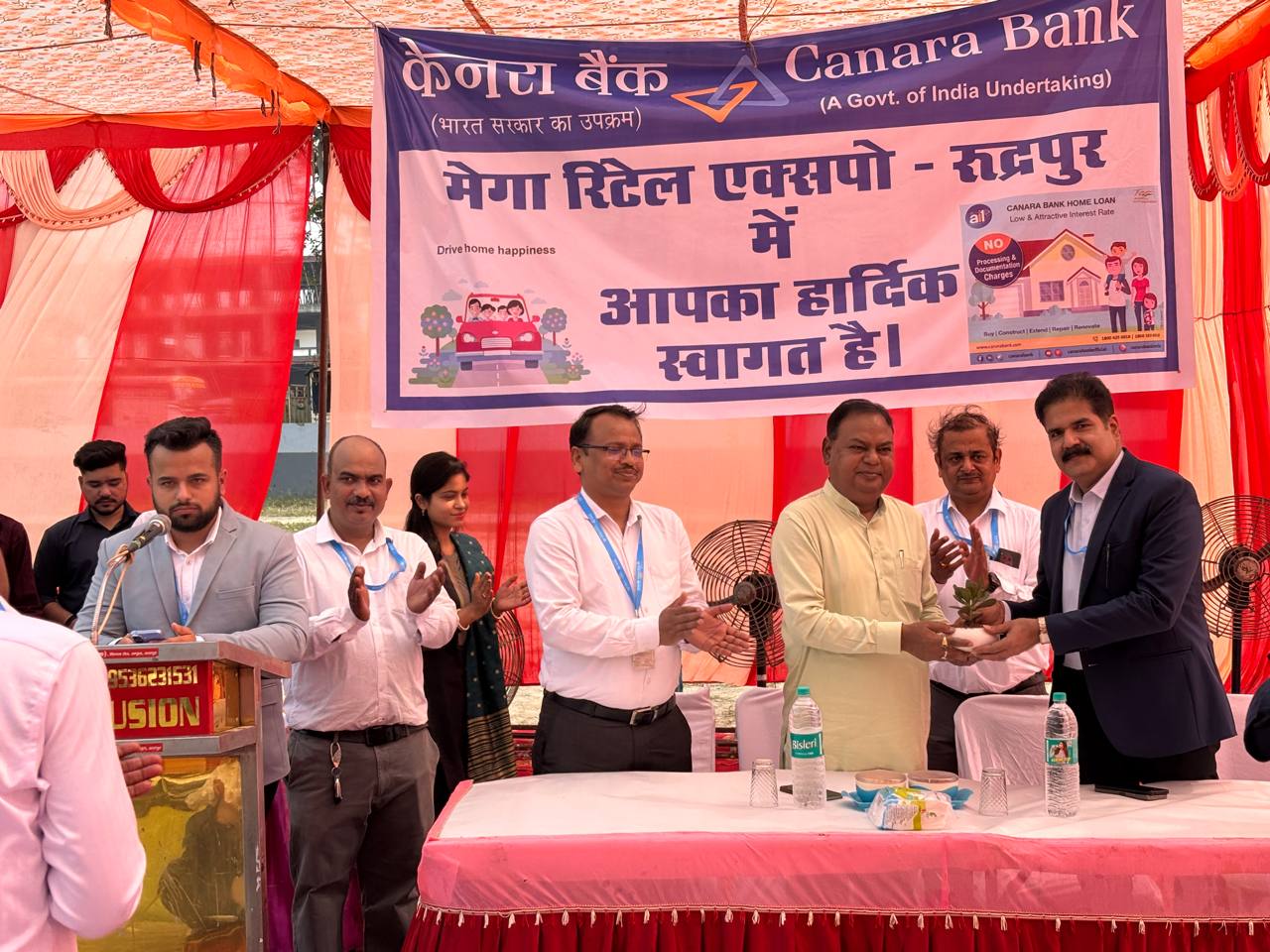 केनरा बैंक द्वारा कल दिनांक 18 अक्टूबर को मेगा रिटेल लोन एक्सपो का आयोजन गांधी पार्क रूद्रपुर में किया गया। जिसमें रुद्रपुर के सभी प्रतिष्ठित कार डीलर एवं नामी बिल्डरों ने प्रतिभा कर अपने उत्पादों का प्रचार प्रसार किया। कार्यक्रम का उद्घाटन निवर्तमान मेयर माननीय रामपाल सिंह जी द्वारा रिबन काट किया गया। जिसमें केनरा बैंक की उत्कृष्ट ग्राहक सेवा एवं न्यूनतम ब्याज दरों पर घर और गाड़ी के लिए लोन जन सामान्य को उपलब्ध कराने हेतु केनरा बैंक की सराहना की। इस अवसर पर केनरा बैंक के क्षेत्रीय प्रबंधक श्री हनीश बाबू मंडल प्रबंधक श्री करन सिंह मेहता व आर ए एच प्रमुख दीपक मित्तल द्वारा बैंक की नयी योजनाओं पर प्रकाश डाला तथा वहां उपस्थित लोगों को केनरा बैंक से जुड़ने का आग्रह किया गया ,तथा इस अवसर पर 10 करोड़ रुपए से अधिक के ऋणों के स्वीकृति पत्र ग्राहकों को वितरित किए गए।